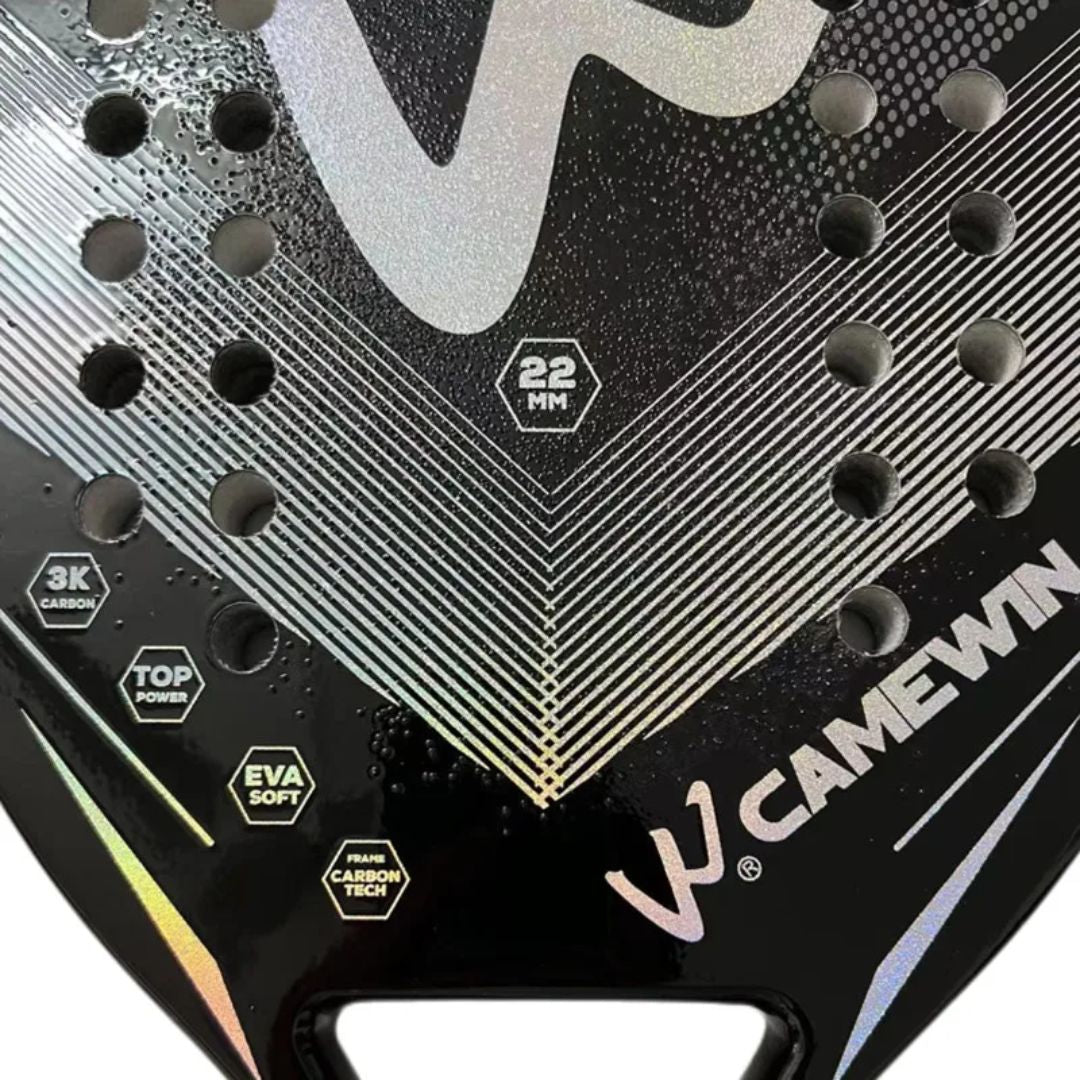 Ons Lunero Eindhoven™ Bryan Padelracket bestaat volledig uit carbonfiber met een ruw oppervlak en een tussenlaag van EVA-schuim in het midden. Het ontwerp geeft het racket een uitstekende balans tussen kracht en controle op het veld. Ideaal voor spelers die waarde hechten aan precisie en prestaties.