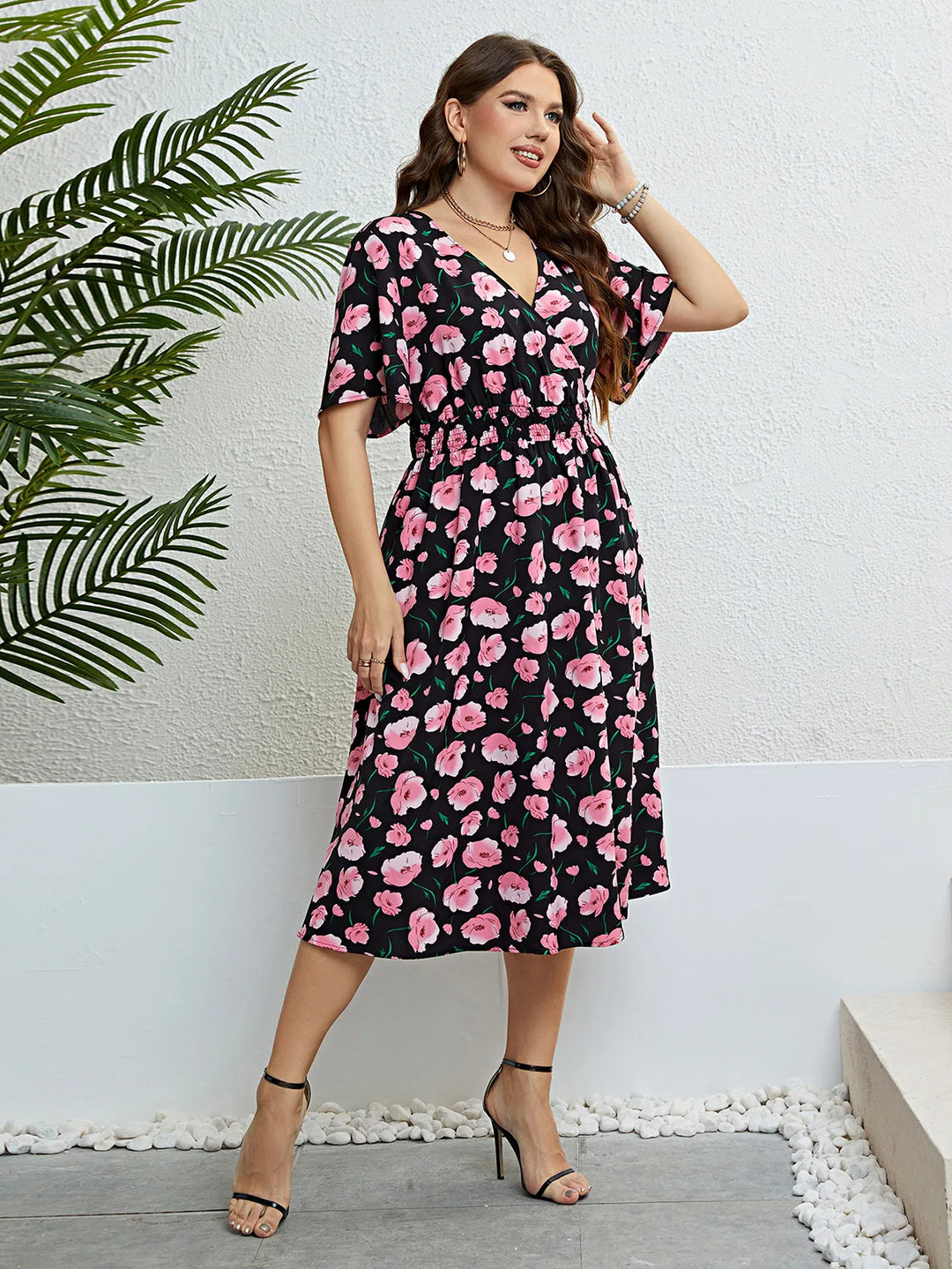 Lunero Eindhoven™ Mica Plus-Size Jurk | Bloemig & Stijlvol
