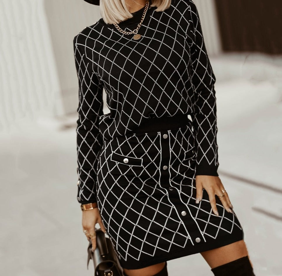 Dan is deze Catalina Set precies wat je zoekt. Deze classy & stijlvolle set bestaat uit een kokerrok en een trui met lange mouwen. Een unieke stijl die je makkelijk combineert met een paar nette schoenen of pumps. De hele set is gemaakt van stretch materiaal en sluit nauw aan rondom het lichaam. De set is One-Size maar past gemakkelijk een S t/m L. Perfect voor een meeting, voor op kantoor of een zakelijk evenement!